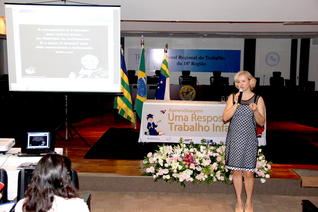 A primeira palestra do encontro foi ministrada pela auditora fiscal do trabalho e coordenadora do Fórum Estadual de Prevenção e Erradicação do Trabalho Infantil em Goiás, Katleem Lima. Em sua exposição, a auditora disse que 80% do trabalho infantil está concentrado na faixa etária de 14 a 17 anos. A maioria desses jovens é do sexo masculino (65,5%) e vive em áreas urbanas (69%). Ainda de acordo com dados exibidos por Katleem, o trabalhador infantil labora em média 26 horas por semana. As informações foram retiradas da PNAD/IBGE de 2015.