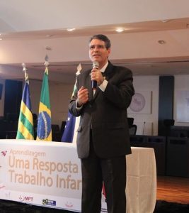 Representando o Ministério Público do Trabalho em Goiás (MPT-GO), o procurador do Trabalho Antônio Carlos Rodrigues frisou que o órgão vem trabalhando organizadamente desde o ano 2000 a favor da erradicação do trabalho infantil e da regularização do trabalho de adolescentes. Ele citou que há 168 milhões de crianças trabalhando no mundo inteiro. No Brasil, o número chega a 2,7 milhões e, em Goiás, são 24 mil. “Temos uma política pública verdadeira e permanente que se chama aprendizagem, não só para empresas privadas, mas também para o poder público, que tem que dar o exemplo. O TRT18 já contrata menores aprendizes e o MPT em Goiás tem procurado fazer o mesmo”, destacou.