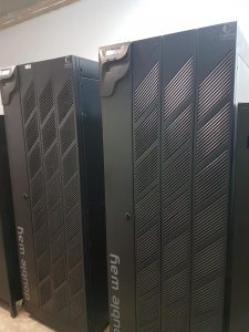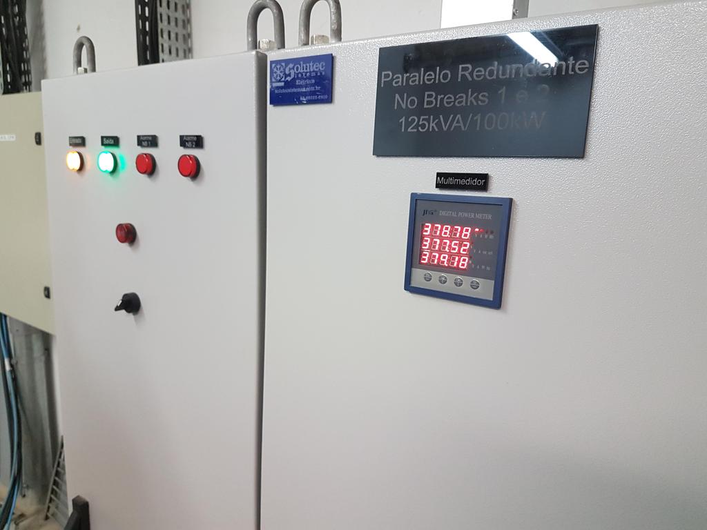 Para garantir o bom funcionamento da nova rede foram adquiridos dois nobreak’s de 120 KVA’s (quilovoltampere) cada e um Grupo Motor Gerador (GMG) de 450 KVA’s. Os nobreak’s trabalham com redundância e paralelismo. Isso significa que na falta de um aparelho o outro assume 100% da carga necessária para o funcionamento da rede. Como os equipamentos não trabalham com a carga total ao mesmo tempo, aumenta-se assim a confiabilidade do sistema. “Se houver uma interrupção externa da Celg a bateria dos nobreak’s têm condição de segurar por 20 minutos no máximo, mas nesse intervalo o Grupo Motor Gerador é acionado e assume o fornecimento de energia”, complementa o engenheiro.