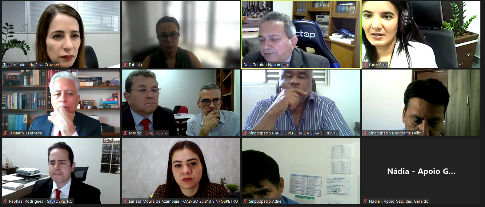 Representantes do Sindicato dos Empregados em Postos de Serviços de Combustíveis e Derivados de Petróleo do Estado de Goiás (Sinpospetro-GO) e do Sindicato do Comércio Varejista de Derivados de Petróleo no Estado de Goiás (Sindiposto) participaram de nova audiência por videoconferência nesta segunda-feira (17/10) no TRT-18 presidida pelo vice-presidente, desembargador Geraldo Nascimento, no processo de dissídio coletivo 11017-41.2022.5.18.0000.