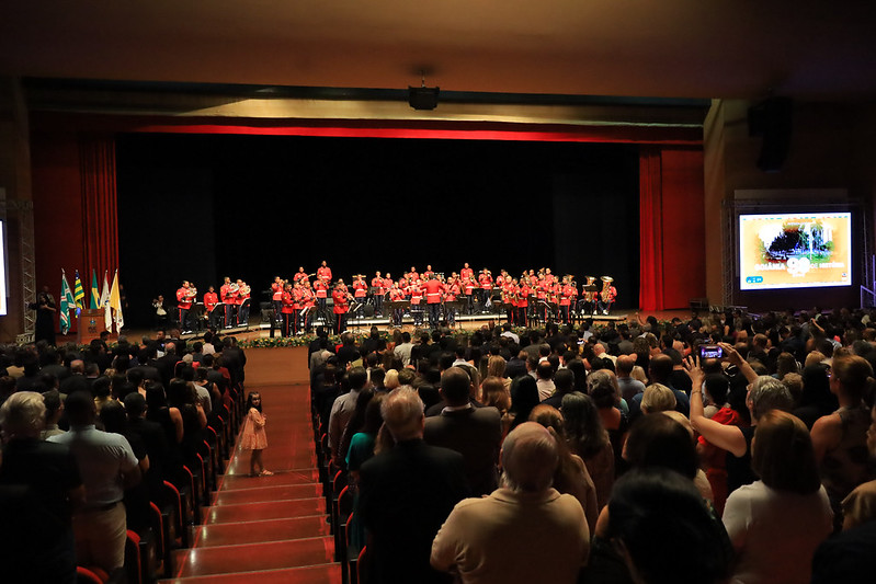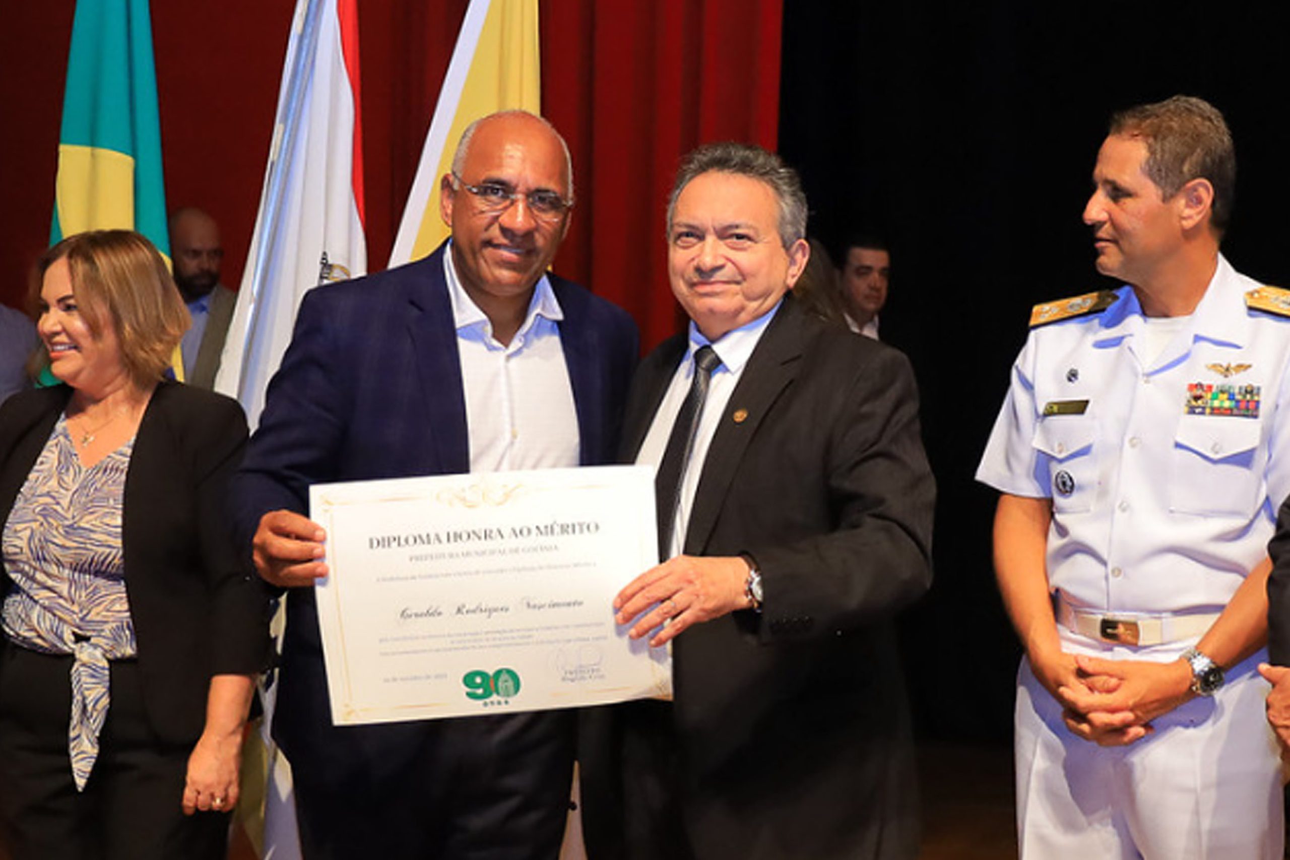 O presidente do TRT-18, desembargador Geraldo Rodrigues do Nascimento, foi uma das personalidades homenageadas pela contribuição na história da construção da capital, que completou no último 24 de outubro 90 anos de existência. A solenidade de homenagem ocorreu no Centro de Convenções da PUC Goiás no último domingo, 29, e contou com apresentações da Banda Sinfônica do Grupamento de Fuzileiros Navais de Brasília e entrega de diplomas a diversas outras personalidades que contribuíram com a história da jovem capital goiana.