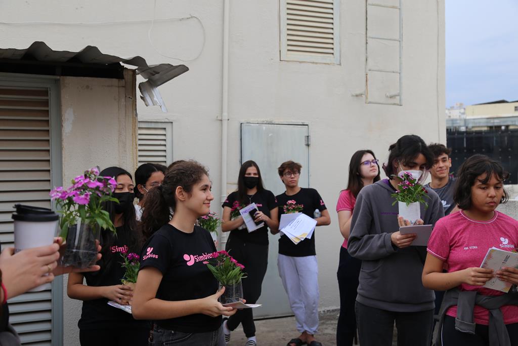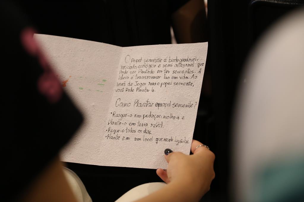 Os alunos também participaram e fizeram exposições sobre temas relacionados à sustentabilidade, com ênfase em propostas para reduzir o impacto do lixo no planeta, e distribuíram papéis sementes e mudas de plantas para todos os presentes.