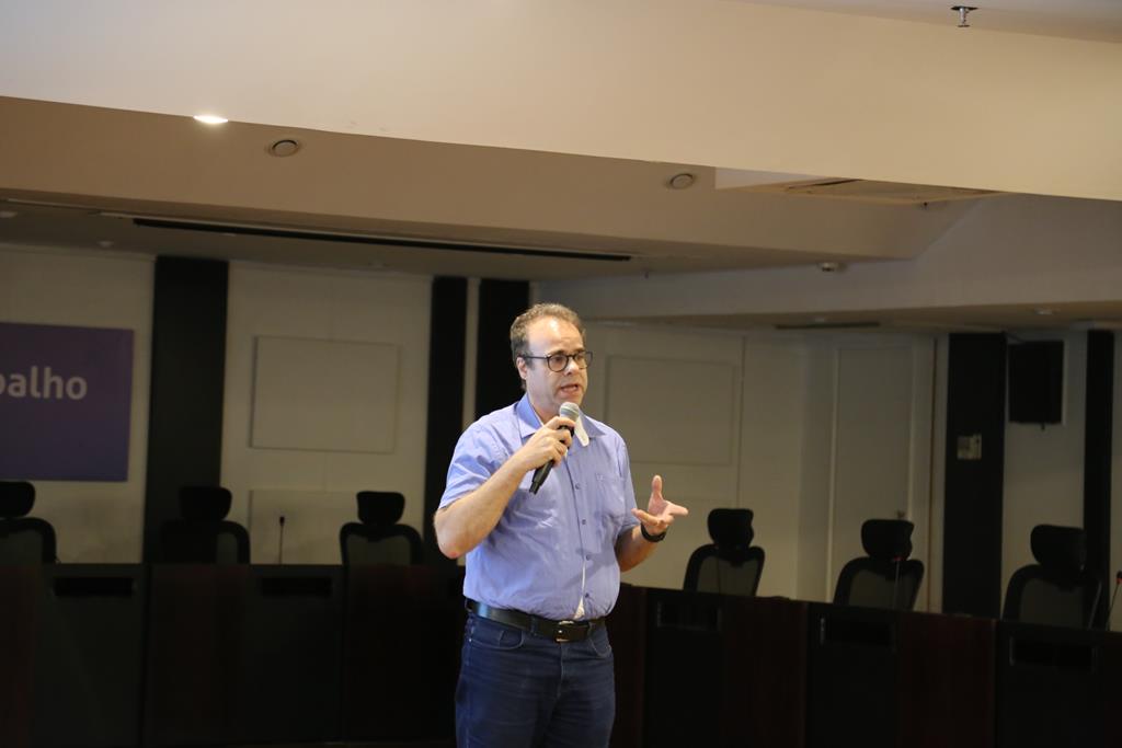 Em seguida, o grupo fez uma visita técnica ao sistema de placas fotovoltaicas instaladas no terraço do edifício Ialba-Luza, guiada pelo servidor e engenheiro Paulo Henrique. Ele explicou o funcionamento do sistema e destacou as vantagens e benefícios do processo. “O sistema é sustentável, econômico, de instalação simples e rápida, não polui e traz retorno financeiro”, destacou.