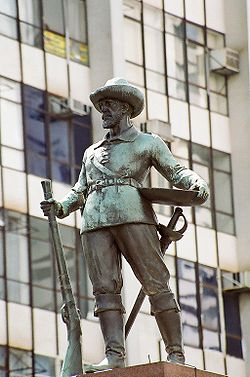 Monumento aos Bandeirantes, Av. Goiás esquina com Av. Anhanguera, em 1940 e atualmente