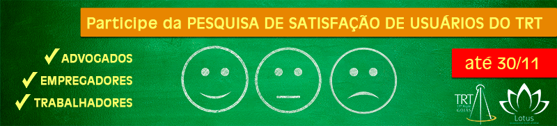 Você que atuou como advogado ou foi atendido pela Justiça do Trabalho em Goiás por qualquer meio, responda a essa importante pesquisa de satisfação de usuários. Os resultados da pesquisa irão nortear nossas ações para aprimorar o atendimento à população. Clique abaixo no seu perfil e responda, no período de 5 a 30 de novembro de 2018: