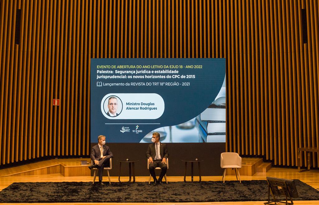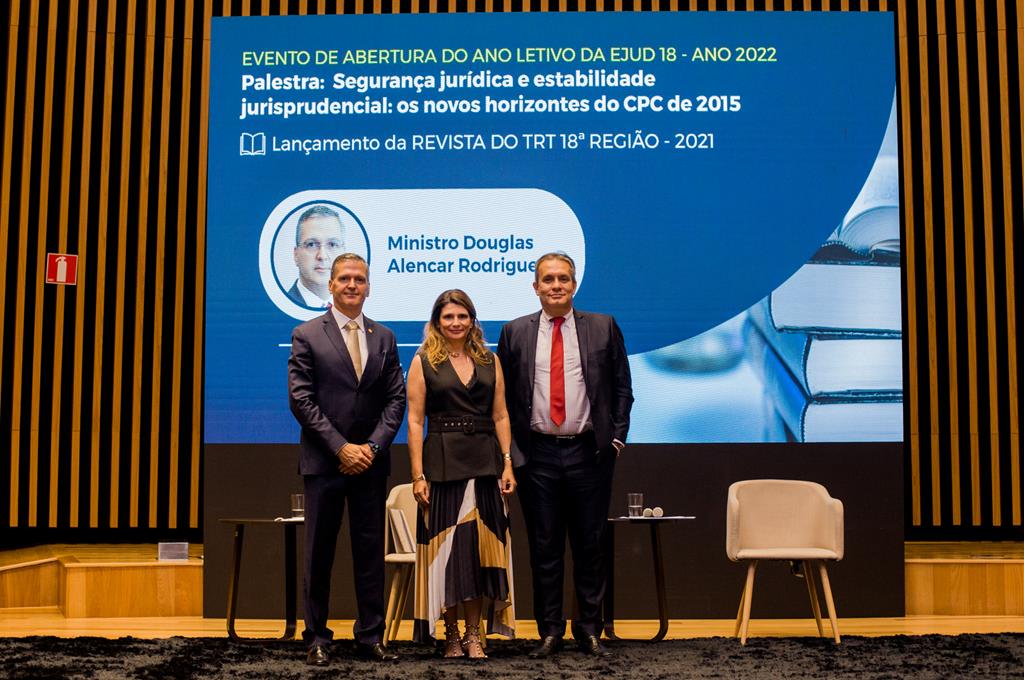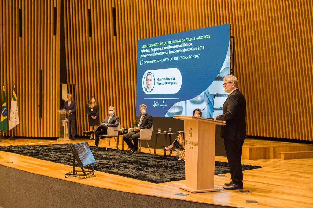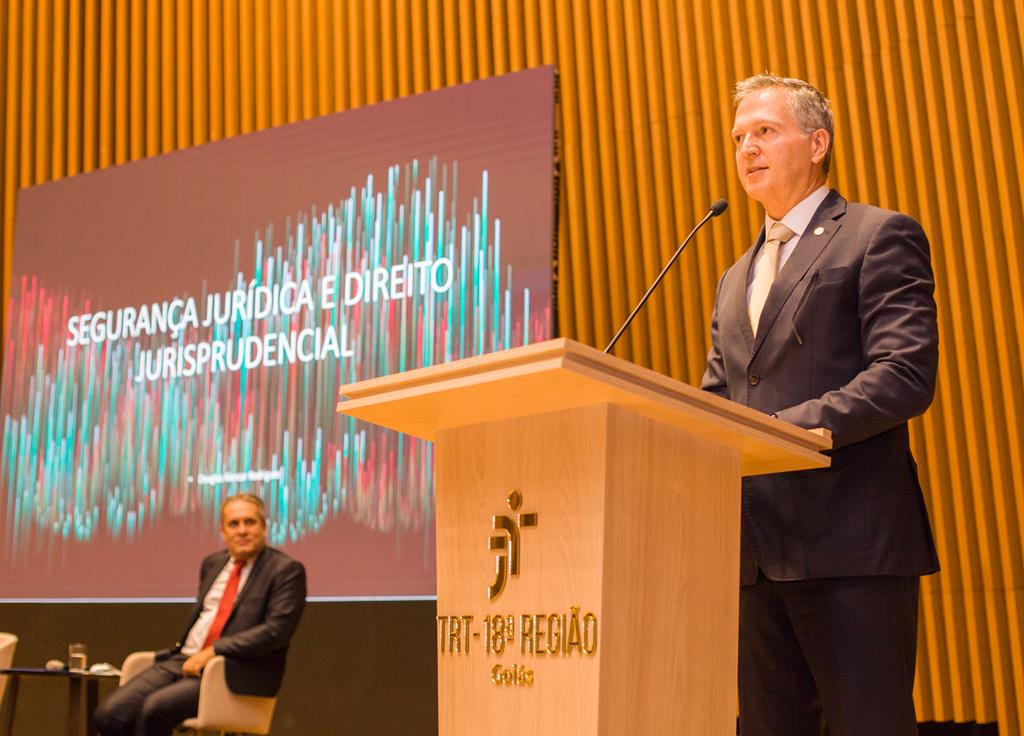 “Os pronunciamentos judiciais são, sim, fonte do Direito”, afirmou o ministro Douglas Alencar, do Tribunal Superior do Trabalho (TST), ao falar sobre segurança jurídica e estabilidade jurisprudencial à luz do Código de Processo Civil de 2015. Ele proferiu palestra que inaugurou o ano letivo da Escola Judicial do TRT-18 na última sexta-feira (11/03), às 17 horas.