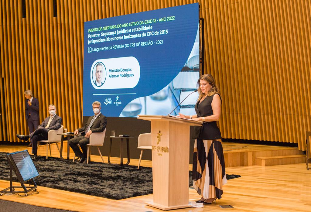 Durante a solenidade também foi realizado o lançamento da Revista do TRT-18, edição de 2020-2021, que reuniu 31 textos inéditos entre artigos doutrinários e temas gerais de 40 colaboradores, além de uma seção dedicada à Jurisprudência com súmulas do Regional, teses jurídicas prevalecentes, súmulas vinculantes do STF e precedentes normativos do TST.