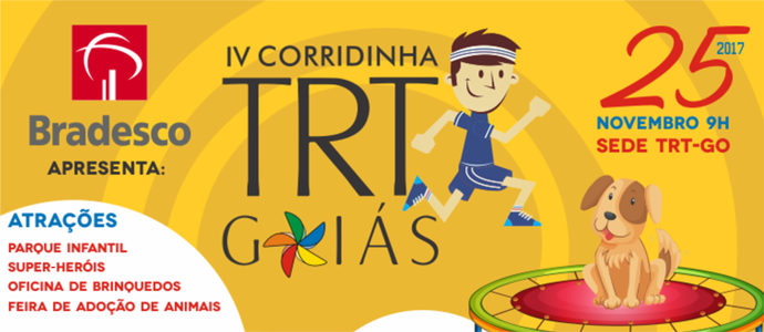 O TRT de Goiás lança na próxima terça-feira (10/10), às 15 horas, a IV Corridinha TRT – Contra o Trabalho Infantil, tema eleito pelo Tribunal em outras edições do evento e utilizado novamente este ano para reforçar a necessidade de combate à exploração da mão de obra infantil. O lançamento da corridinha será realizado no Fórum Trabalhista de Goiânia, paralelamente ao lançamento da 8ª corrida de rua “10 milhas TRT Goiás”, destinada ao público adulto.