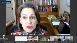 A ministra Maria Cristina Peduzzi abriu a 4ª Sessão telepresencial do CSJT e saudou os juízes empossandos pela relevante conquista pessoal e profissional. “A responsabilidade que terão pela frente é grande diante do cenário difícil e desafiador”, ressaltou a ministra, ao lembrar o volume elevado de ações represadas por conta da pandemia da covid-19. “Tivemos 30% a menos de ações ajuizadas e será preciso muito esforço dos juízes de primeiro grau para colocar a prestação jurisdicional em dia”, lembrou.
