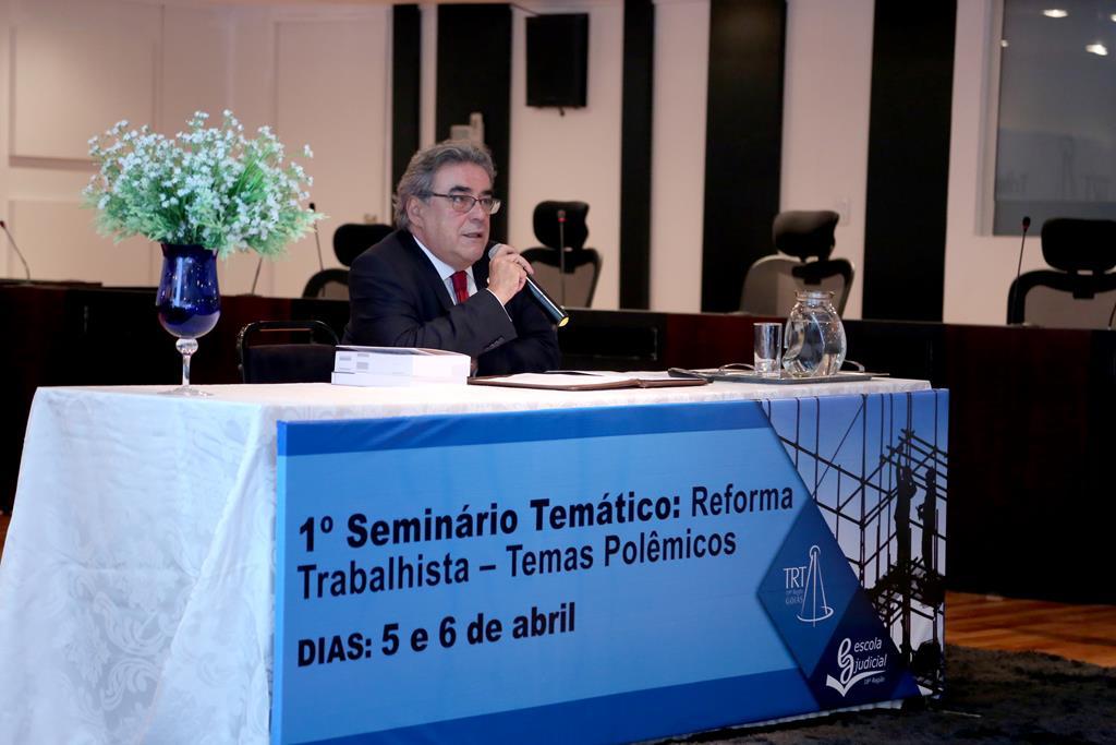 O doutor em Filosofia do Direito pela PUC de São Paulo e juiz do TRT23, André Araújo Molina, proferiu a palestra de abertura do 1º Seminário sobre Reforma Trabalhista – temas polêmicos, realizado pelo TRT de Goiás nesta quinta e sexta-feiras (5 e 6/4) no auditório do Fórum Trabalhista de Goiânia. O evento é direcionado a magistrados e servidores e tem o objetivo de propiciar uma maior compreensão sobre a aplicação das principais alterações trazidas pela Reforma Trabalhista, aprovada pela Lei 13.467/2017.