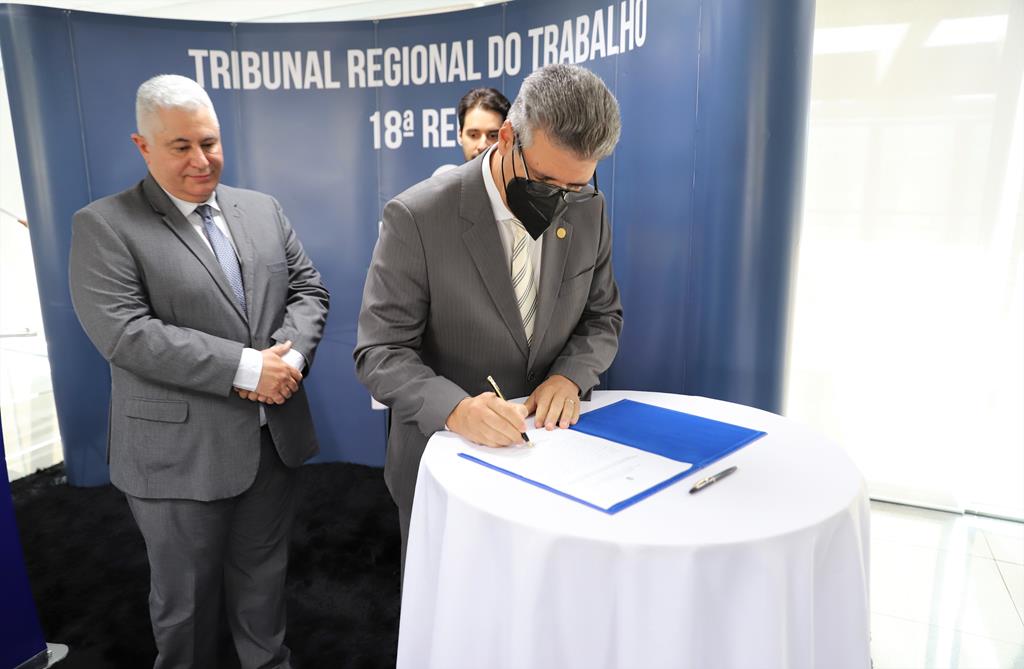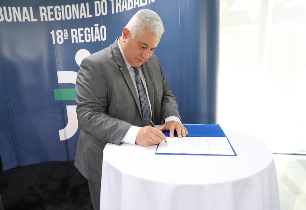 Juízes e desembargadores presenciaram a assinatura da requisição para inclusão da VT de Catalão no Cejusc Digital