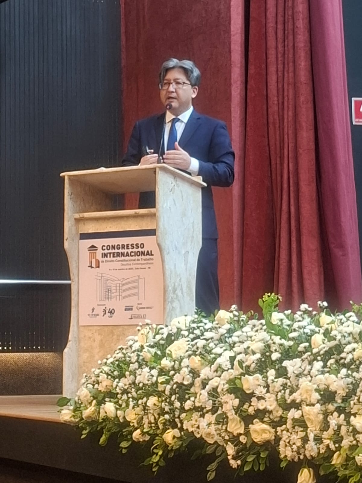 O juiz do Trabalho Kleber Waki, coordenador pedagógico da Escola Judicial do TRT-GO, participou nesta quinta-feira (9/10) do Congresso Internacional de Direito Constitucional do Trabalho – Desafios Contemporâneos, realizado em João Pessoa (PB) pela Escola Judicial do TRT da 13ª Região. O magistrado integrou o painel “Inteligência Artificial e Automação nas Relações de Trabalho: regulamentação, empregabilidade e perspectivas para o futuro”, ao lado de professores e pesquisadores da área jurídica.
