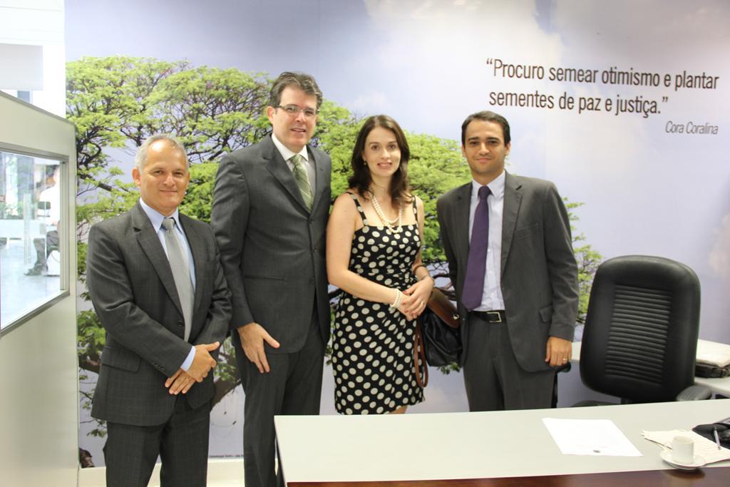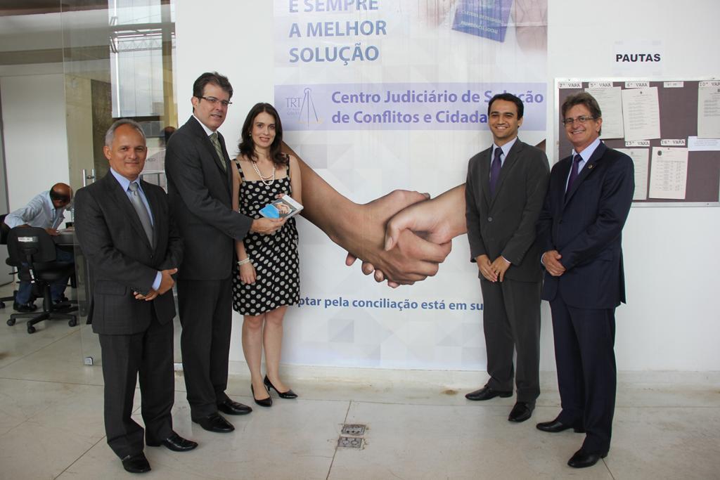 A juíza Anna Carolina Marques Gontijo, do TRT de Minas Gerais, visitou o Centro Judiciário de Solução de Conflitos e Cidadania do TRT de Goiás, acompanhada pelo secretário da Corregedoria Regional do TRT3, Eliel Negromonte, na manhã desta quinta-feira, 5/2. O presidente do Tribunal, desembargador Aldon Taglialegna, acompanhou e mostrou aos visitantes o funcionamento da unidade..O objetivo da visita é buscar subsídio para aprimorar o Centro já em funcionamento da 3ª Região.