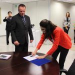 O presidente do Tribunal Regional do Trabalho da 18ª Região (Goiás), desembargador Breno Medeiros, deu posse na manhã desta terça-feira, 3/10, a Marcella Dias Araújo Freitas no cargo de juíza do Trabalho substituta. Ela já era juíza no TRT da 14ª Região (Rondônia e Acre) e foi removida para o Regional goiano. Marcela preenche vaga decorrente da promoção da juíza Lívia Fátima Gondim Prego à titularidade da Vara do Trabalho de Mineiros. A posse foi realizada no Gabinete da Presidência com a participação de magistrados, servidores e familiares da empossada.