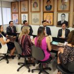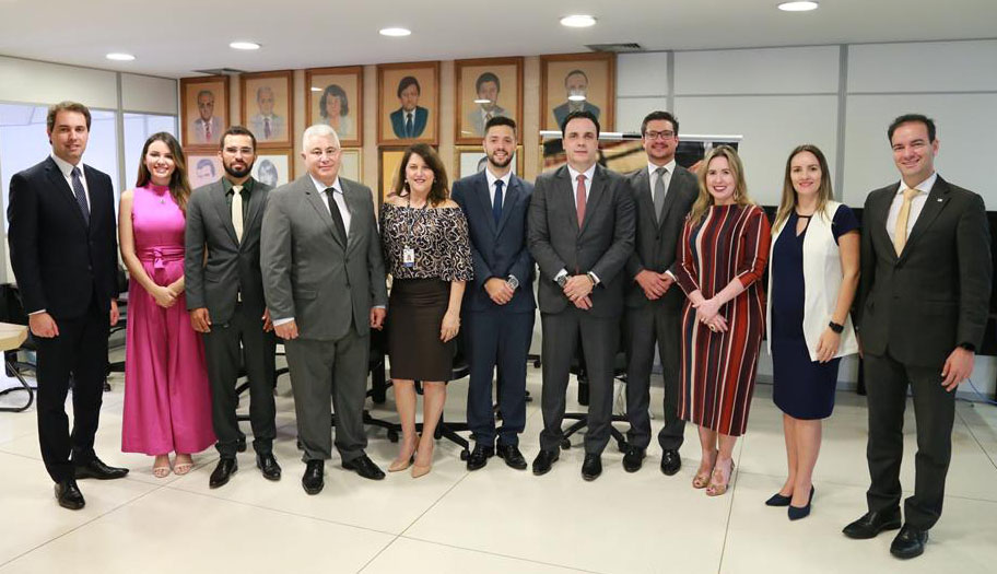 Visita do novo coordenador do Cejusc à Agatra. Da esquerda para a direita: advogados Danilo Prado Alexandre, Leide Bessa, Guilherme Moreira, juiz Eduardo Thon, diretora do Cejusc Goiânia Leila Barbosa, advogado Jerônimo Batista Júnior, presidente da Agatra, e os advogados Joaquim Cândido Jr, Wellisson Amaral, Cristiane Pavan, Marília Couto e José Humberto Meireles
