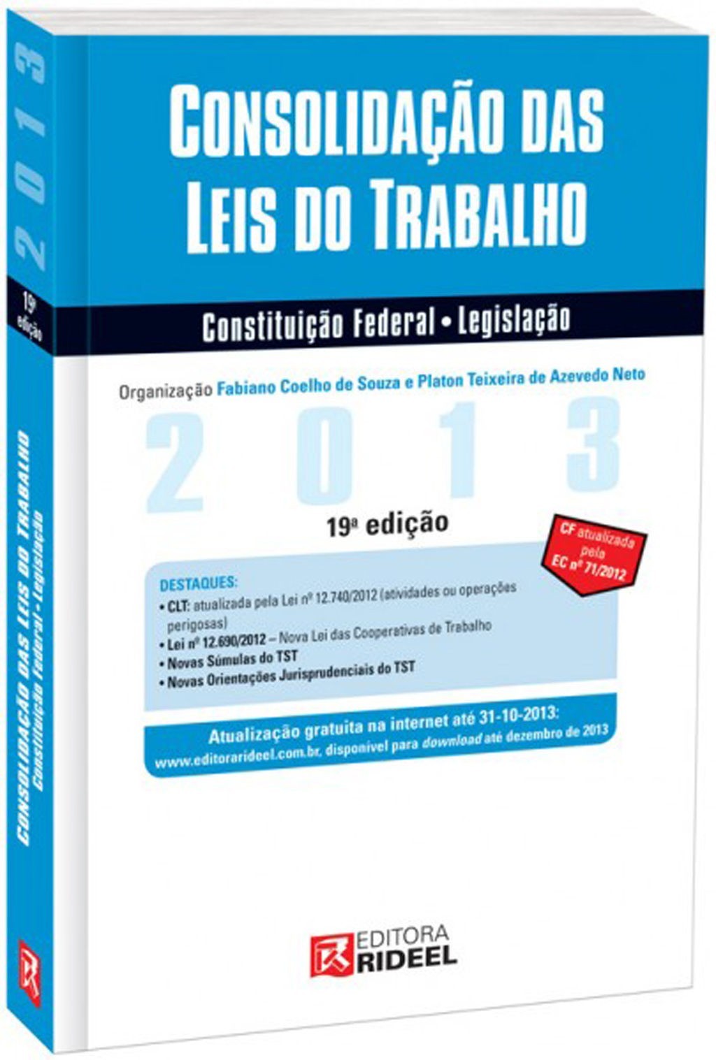 Os juízes são os pioneiros em Goiás no lançamento da CLT remissiva, muito utilizada pelos usuários do Direito e para candidatos a concurso público. A obra contempla a íntegra da Constituição Federal, da Consolidação das Leis do Trabalho bem como legislação e súmulas e orientações jurisprudenciais dos Tribunais Superiores relacionadas à matéria, com atualização gratuita pela internet.