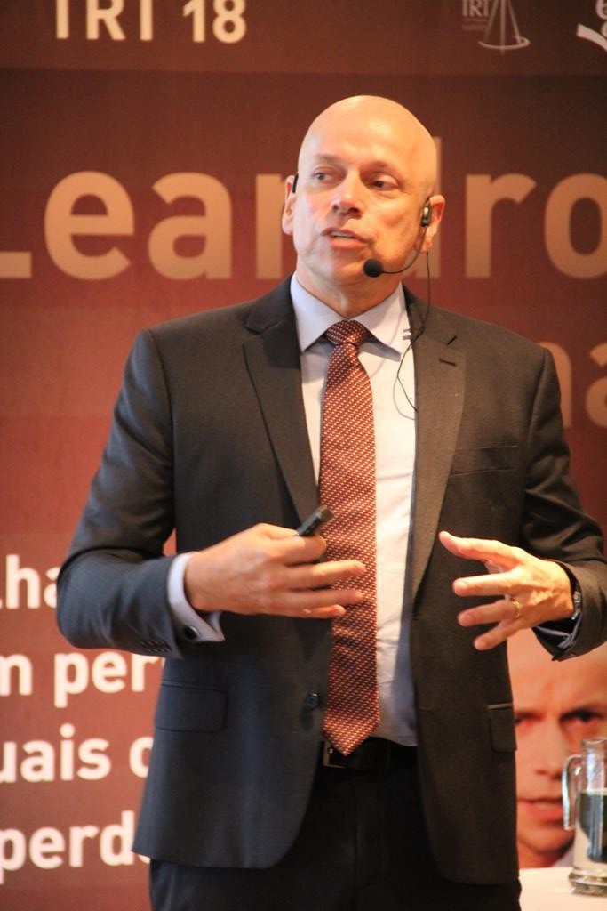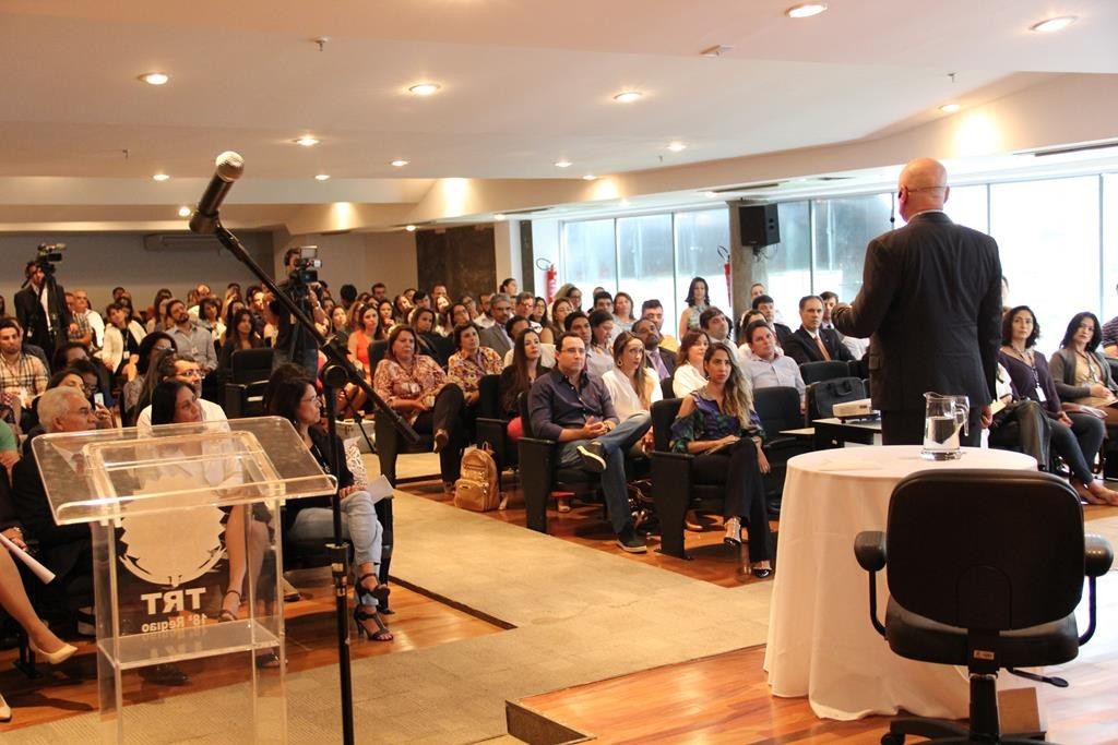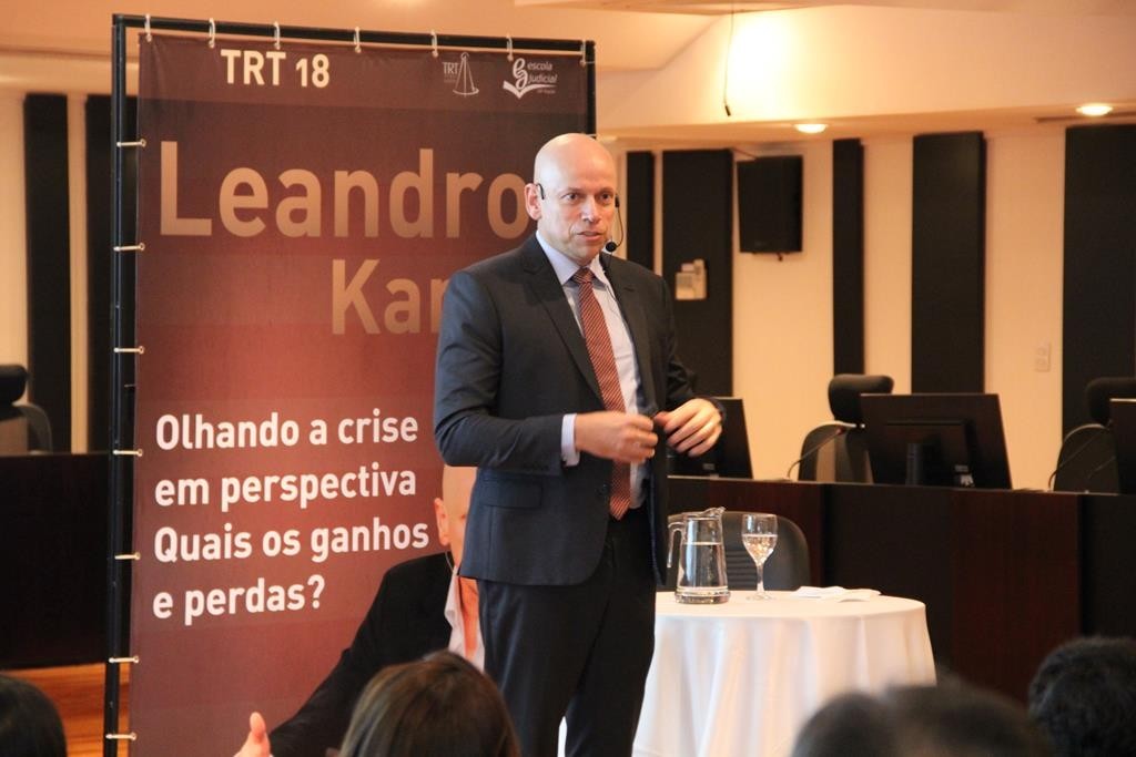 O professor Leandro Karnal, filósofo e doutor em História pela USP, proferiu, na manhã desta sexta-feira, 19/2, palestra de abertura do ano letivo de 2016 da Escola Judicial do TRT18, no auditório do Fórum Trabalhista de Goiânia. A palestra, cujo tema foi “Olhando a crise em perspectiva. Quais os ganhos e perdas?”, foi assistida por cerca de 300 pessoas e também foi transmitida ao vivo pelo site do Tribunal. A mensagem deixada pelo professor foi de otimismo quanto aos rumos da crise brasileira. Ele admitiu que o país passa por uma crise de liderança, o que faz com que as pessoas fiquem perdidas, mas ressaltou que, apesar de tudo, estamos em plena capacidade de responder ao problema. “Toda vez que eu saio da minha zona de conforto eu repenso os meus valores”, disse ao falar da importância de se olhar a crise em perspectiva.
