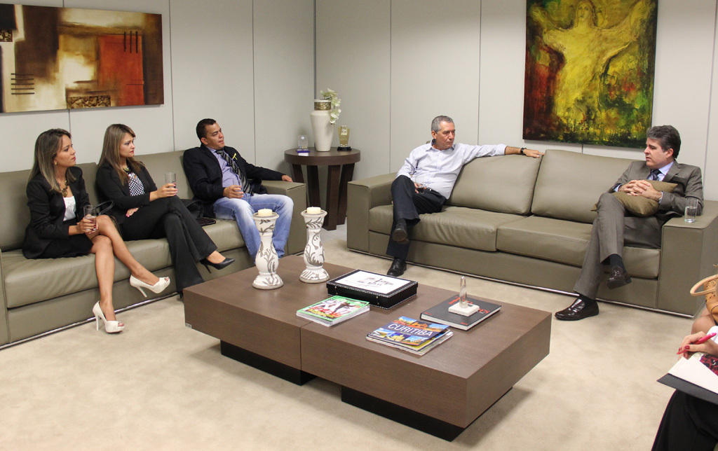 O desembargador Aldon Taglialegna, presidente do TRT, recebeu nesta quinta-feira, 10/9, o deputado estadual Sérgio Bravo e o presidente da Câmara Municipal de Senador Canedo, Roberto Lopes, acompanhados da advogada Loana Araújo Neto e da bacharel em direito Hellen Torcate. A comitiva solicitou ao presidente a instalação de uma vara do trabalho naquele município.