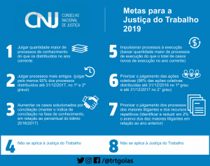 Uma das metas que consiste em grande desafio para a Justiça do Trabalho é a Meta 2 (julgar os processos mais antigos). Inicialmente, a proposta apresentada pelos tribunais e consolidada pelo Colégio de Presidentes e Corregedores dos Tribunais Regionais do Trabalho (Coleprecor) foi a manutenção do índice 90% de cumprimento, tendo em vista que, em razão da expectativa de implementação da reforma trabalhista, houve considerável incremento do número de ações trabalhistas em 2017, resultando numa linha base bastante expressiva. Já o CNJ contrapropôs um índice de 95%. Após a apresentação das diversas argumentações, a plenária decidiu pelo meio termo e aprovou o índice de 92%.