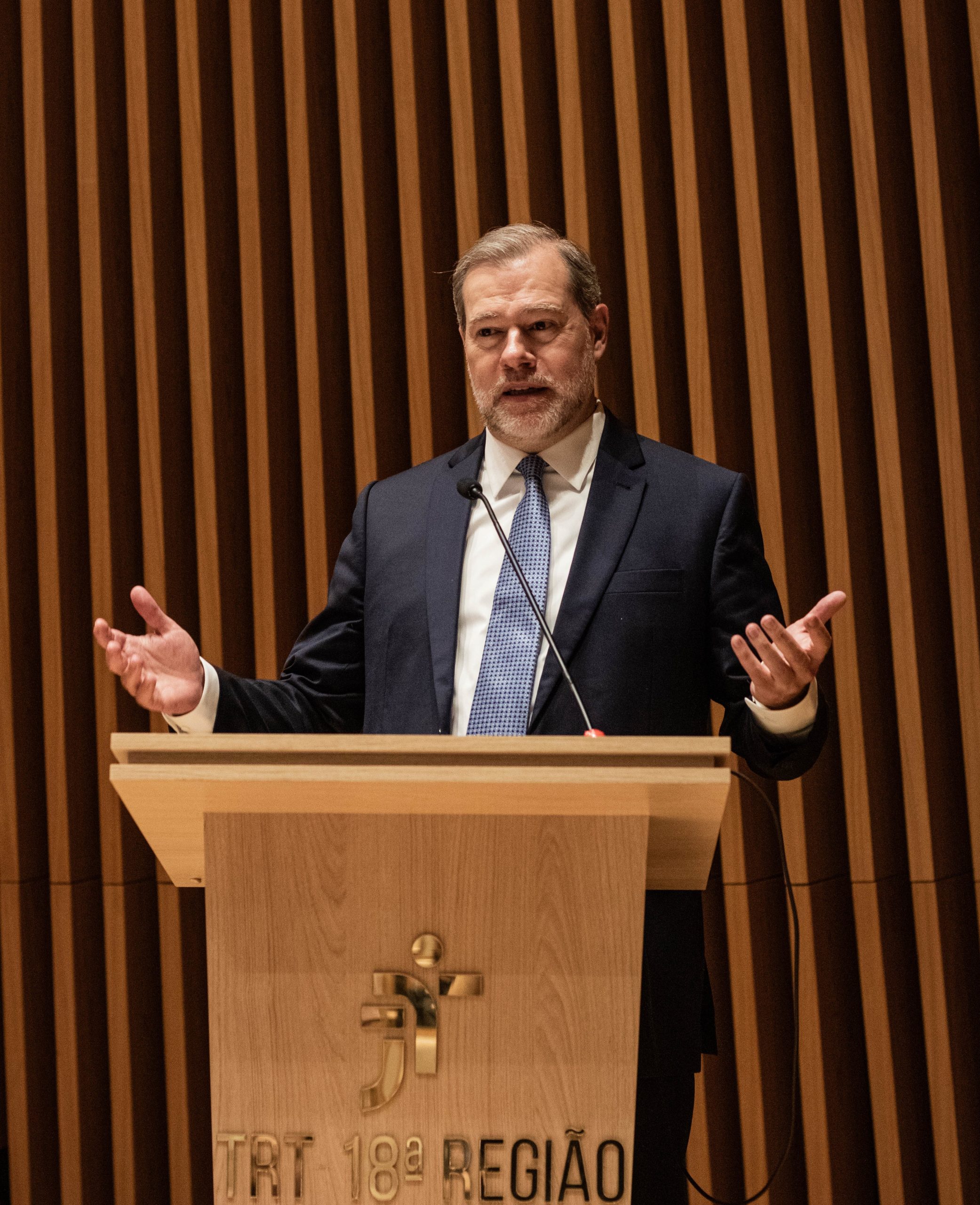 Uma aula magna realizada no Auditório dos Goyazes do Tribunal Regional do Trabalho da 18ª Região (TRT-GO) na última sexta-feira, 13/6, reuniu ministros de tribunais superiores para discutir o tema “Sistema de Precedentes nas Cortes Supremas e seus Impactos no Sistema Jurídico, Econômico e Social Brasileiro”. Participaram do evento os ministros Dias Toffoli, do Supremo Tribunal Federal (STF), Ribeiro Dantas, do Superior Tribunal de Justiça (STJ), Dora Maria da Costa, Breno Medeiros e Guilherme Caputo Bastos, do Tribunal Superior do Trabalho (TST). Caputo Bastos também é conselheiro do CNJ.