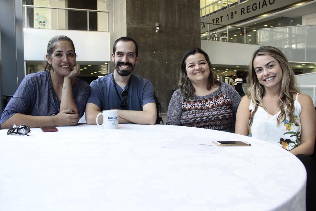 Servidoras Carolina Cavalcanti e Fernanda Strengari (terceira e quarta da esquerda para a direita) com colegas da 2ª VT de Goiânia