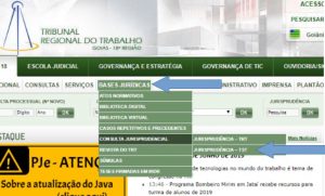O link pode ser acessado no site do TST, na aba Jurisprudência, e também pelo portal do TRT18 por meio da aba “Bases Jurídicas”, clicando em seguida em “Consulta Jurisprudencial” e Jurisprudência – TST. Nessa mesma sub-página também é possível acessar a Jurisprudência do TRT18, que traz as opções pesquisa livre e pesquisa avançada.