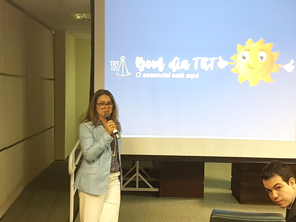 Durante os trabalhos desta manhã, a diretora da Coordenadoria de Comunicação Social do TRT de Goiás, Márcia Bueno, apresentou a nova ferramenta de comunicação do Tribunal ‘Bom dia TRT’, cujo objetivo é facilitar a comunicação de informações essenciais entre magistrados e servidores. Ela também falou sobre gestão de crise e disse que ambos os assuntos despertaram o interesse dos desembargadores da Justiça do Trabalho.