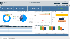 O painel é um módulo do Sistema de Gestão Orçamentária (Sigeo-JT) e apresenta, de forma simplificada, intuitiva e dinâmica, o orçamento da Justiça do Trabalho, tanto de maneira macro quanto individualizada, por tribunal. A perspectiva é que ele contribua para um maior controle dos gastos, evitando a inscrição de valores em restos a pagar. O painel orçamentário já está disponível dentro do portal Sigeo.