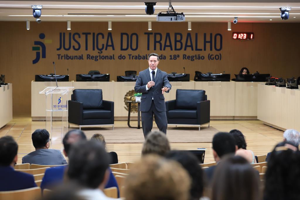 Desembargadores, juízes e servidores do TRT-GO e advogados trabalhistas assistiram a uma palestra na manhã de quarta-feira, 12/3, no Plenário Ipê, sobre o sistema Pangea-Gab. O evento foi promovido pela Escola Judicial (Ejud 18) e teve como palestrante o juiz Rodrigo Trindade de Souza, mestre em Direito, juiz auxiliar da Presidência do TRT-4 (RS) e titular da 2ª Vara do Trabalho de Lajeado (RS). Ele integrou o grupo de trabalho responsável pela criação do sistema.