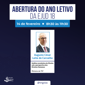 Evento: abertura do ano letivo da Ejud 18 com a palestra: “Análise Econômica do Direito sob a perspectiva dos Direitos Humanos”, com o ministro do TST Augusto César Leite de Carvalho.