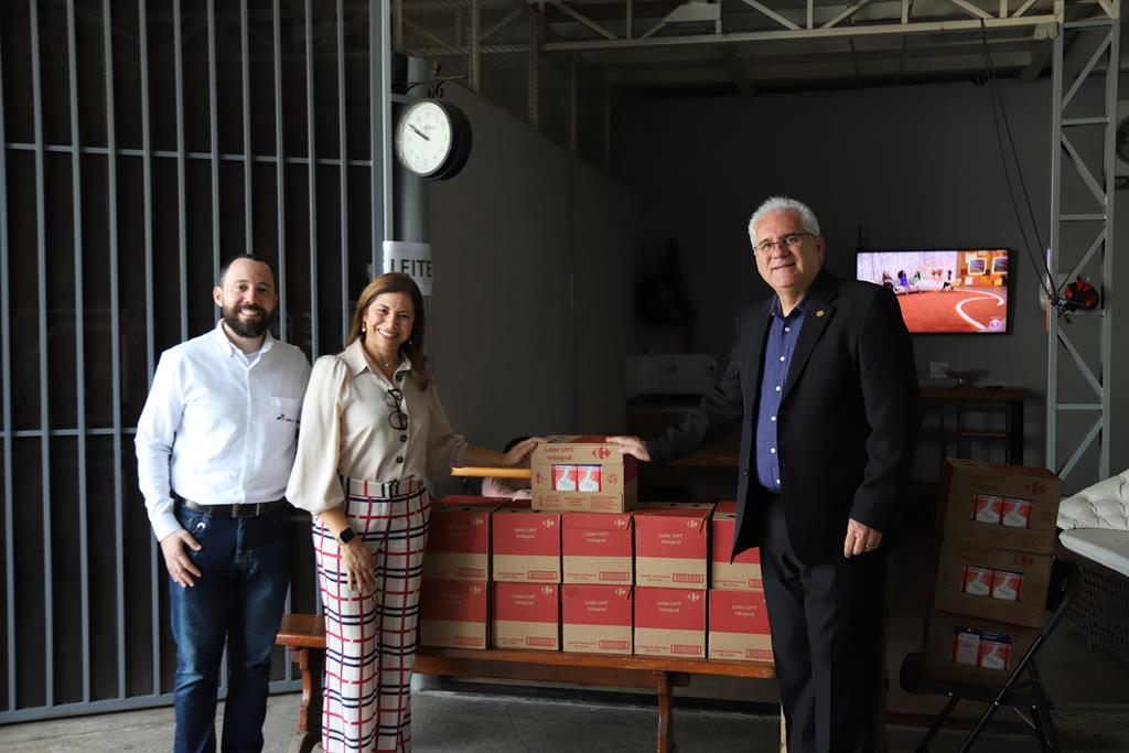 Desembargador Welington Peixoto, juíza Eunice Castro e Eduardo Alves, diretor da Adial Log com os donativos