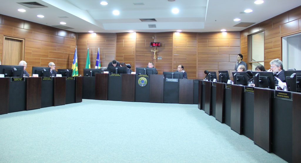 O Tribunal Pleno do TRT da 18ª Região realizou hoje, 21/02, a primeira sessão de julgamento do ano para decidir uma extensa pauta composta por 100 processos de competência originária e recursos de primeiro grau. A sessão foi presidida pelo desembargador-presidente Breno Medeiros e em três horas foram julgados 96 processos, sendo apenas quatro retirados da pauta.