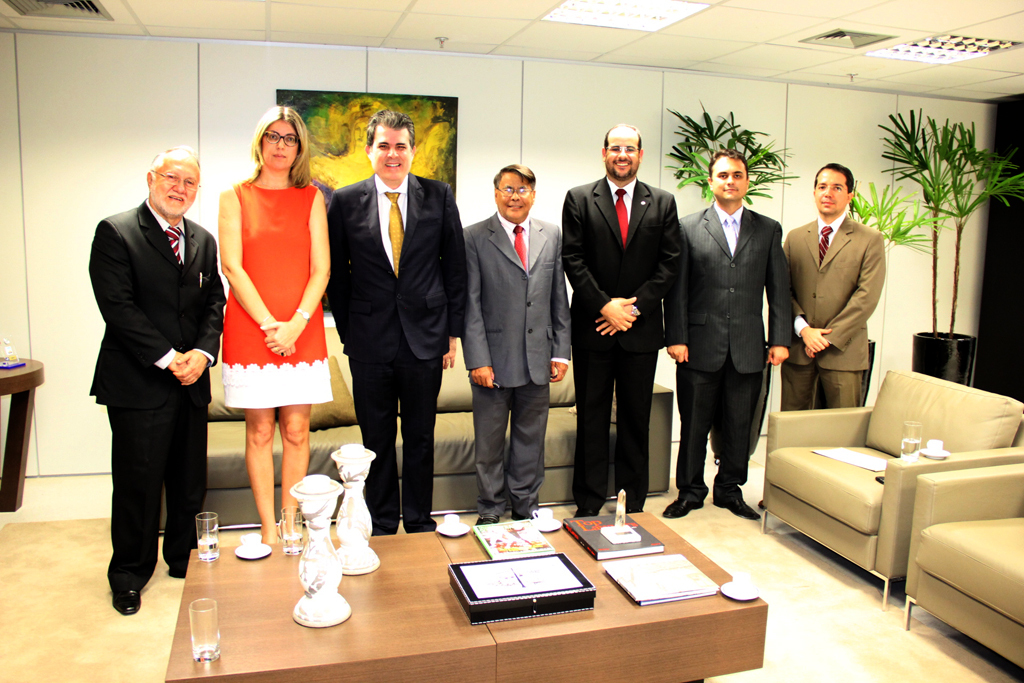 O presidente do TRT de Goiás, desembargador Aldon Taglialegna, recebeu no Gabinete da Presidência na tarde desta quinta-feira, 18/6, os advogados João Negrão de Andrade Filho e Tabajara Póvoa Neto, diretores da Comissão de Direito do Trabalho e Comissão de Direito Digital da OAB-Goiás, respectivamente; a advogada Arlete Mesquita, presidente da Associação Goiana dos Advogados Trabalhistas (Agatra); e os conselheiros da OAB-Goiás, Jerônimo José Batista e Antônio Pereira. Na ocasião, os advogados apresentaram ofícios solicitando ao TRT melhorias na infraestrutura para acesso à prestação jurisdicional.