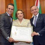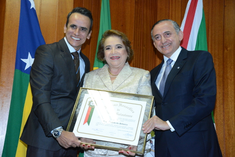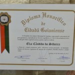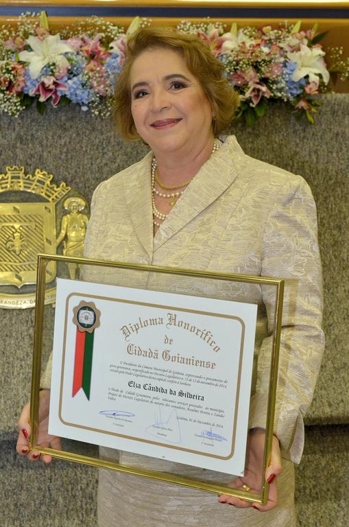 Camara cidada goianiense Elza SilveiraA presidente do TRT Goiás, desembargadora Elza Cândida Silveira, se emocionou na noite desta segunda-feira, 1º/12, ao receber das mãos dos vereadores Anselmo Pereira (PSDB) e Zander Fábio (PSD) o título de cidadã goianiense. Magistrados e servidores do Tribunal acompanharam a cerimônia, realizada na Câmara Legislativa de Goiânia, além de vereadores e outras autoridades do Estado de Goiás.