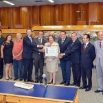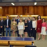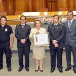 155Fizeram parte da mesa da sessão especial: Alexandre Eduardo Felipe Tocantins, procurador-geral do Estado de Goiás, representando o governador Marconi Perillo; Dalmir Batista, chefe de gabinete da procuradoria geral do Município de Goiânia, representando o prefeito de Goiânia, Paulo Garcia; desembargador Gentil Pio de Oliveira, do TRT da 18ª Região; Tarcísio Francisco dos Santos, procurador-geral do Município de Aparecida de Goiânia, representando o prefeito de Aparecida de Goiânia, Maguito Vilela; major Bruna Lima Síris, representando o comandante-geral da Polícia Militar do Estado de Goiás, coronel Sílvio Benedito Alves; José Evaristo dos Santos, presidente da Federação do Comércio do Estado de Goiás (Fecomercio – GO); desembargador Paulo Teles, ex-presidente do Tribunal de Justiça do Estado de Goiás. O vereador Divino Rodrigues (PROS) estava presente prestigiando a sessão especial.