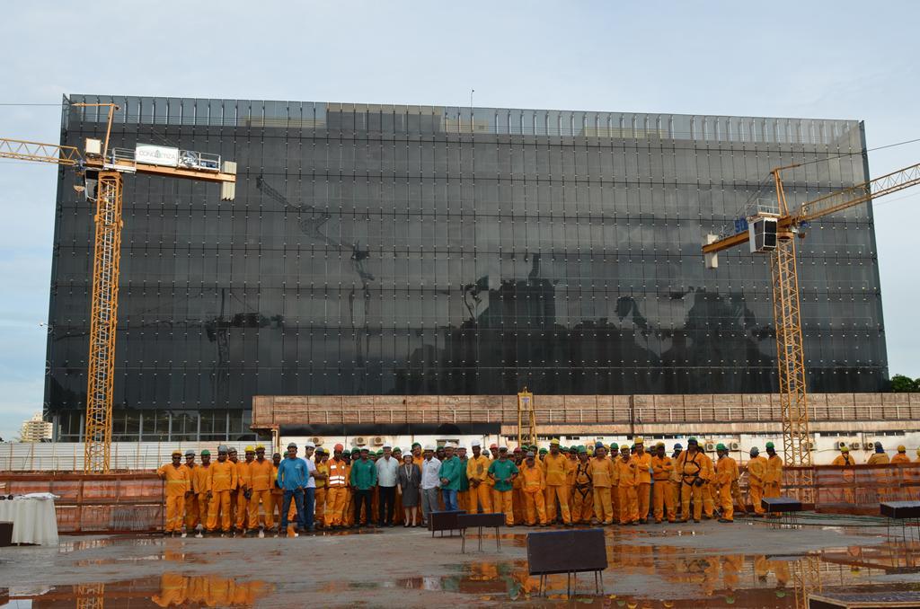 Ao falar com os trabalhadores, a presidente, emocionada, agradeceu pelo empenho na construção do novo prédio do TRT. “Estou muito orgulhosa dessa obra. Espero que vocês compreendam o valor de cada pedrinha, de cada tijolo colocado aqui. Porque vocês, trabalhadores, estão construindo a casa do trabalhador”, salientou. A desembargadora Elza da Silveira também pediu que os trabalhadores tomem muito cuidado para não sofrerem nenhum acidente na obra. “Queremos que vocês trabalhem bem e retornem para suas casas com a saúde íntegra”, disse a presidente, que também informou que a obra deverá ser inaugurada em 2017.