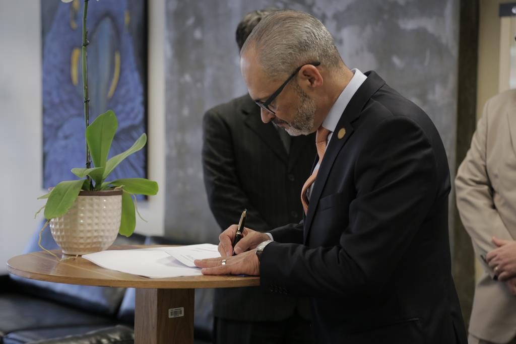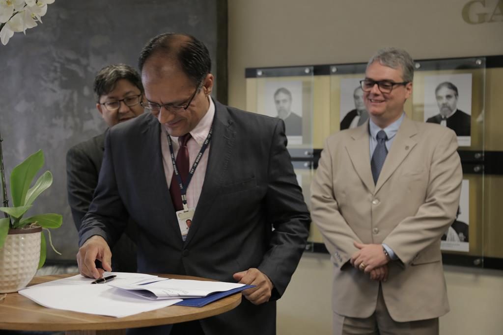 O presidente do TRT de Goiás, desembargador Paulo Pimenta, e o procurador federal Tomaz Antonio Adôrno de La Cruz, representando a Procuradoria Regional Federal da 1ª Região (PRF1), assinaram na manhã desta quarta-feira, 18/9, acordo de cooperação técnica para agilizar pagamento de créditos trabalhistas em determinadas ações de execução em que sejam partes as autarquias ou fundações públicas federais como responsáveis subsidiárias.
