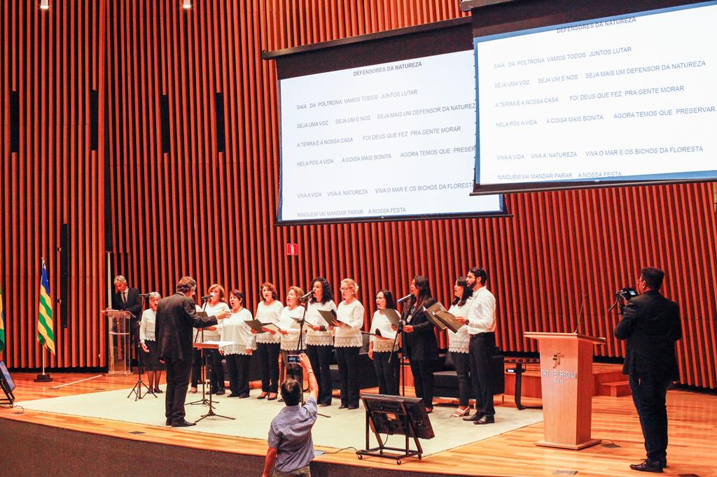 A solenidade contou com a presença do coral Labor em Canto, do TRT-18, com a regência do maestro Eliseu Ferreira, cantando o hino nacional e interpretando a música Defensores da Natureza.