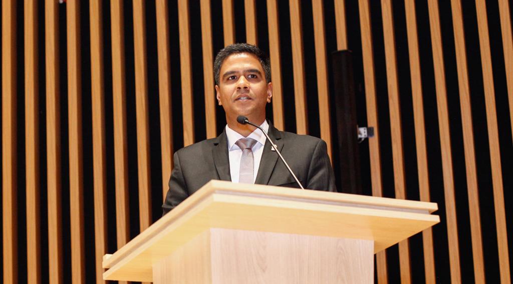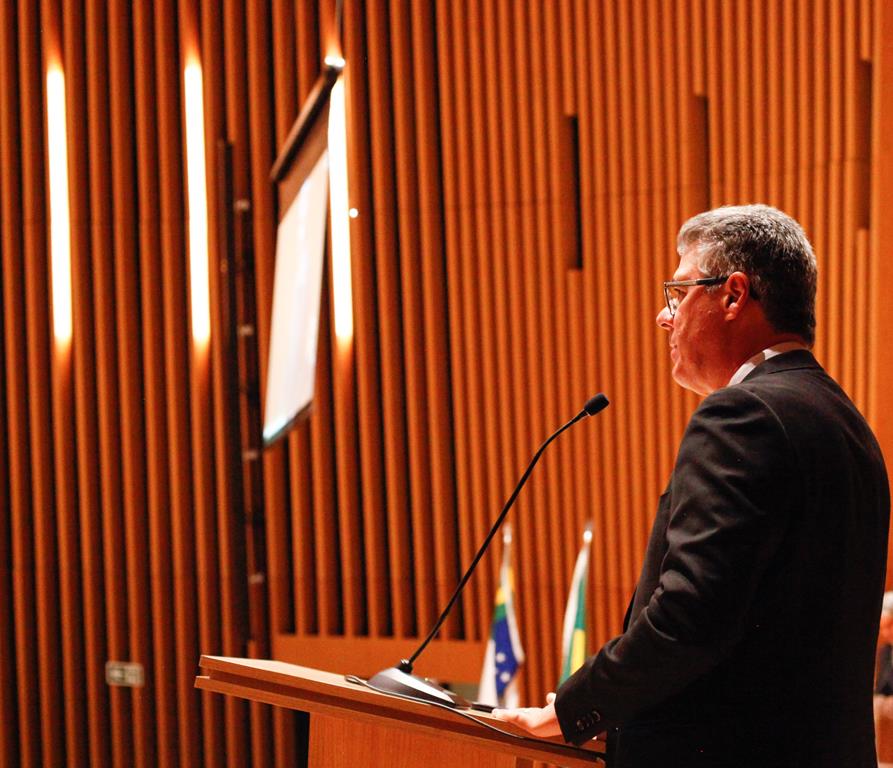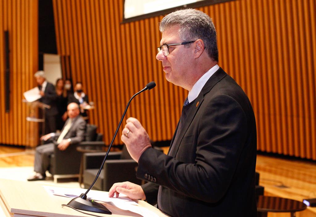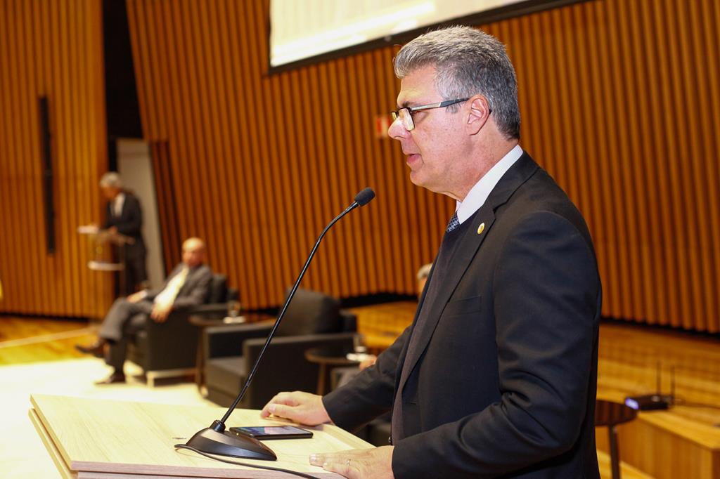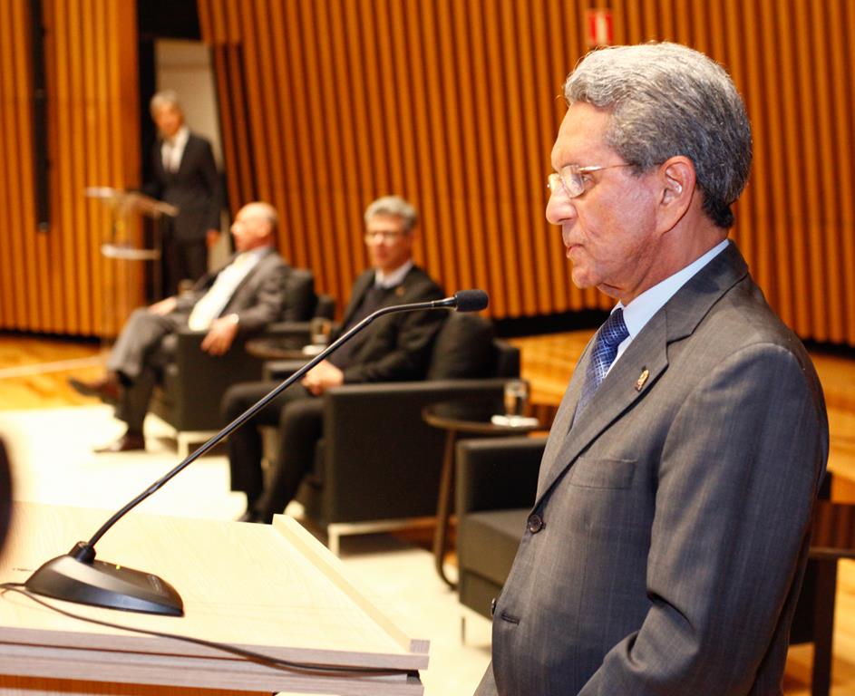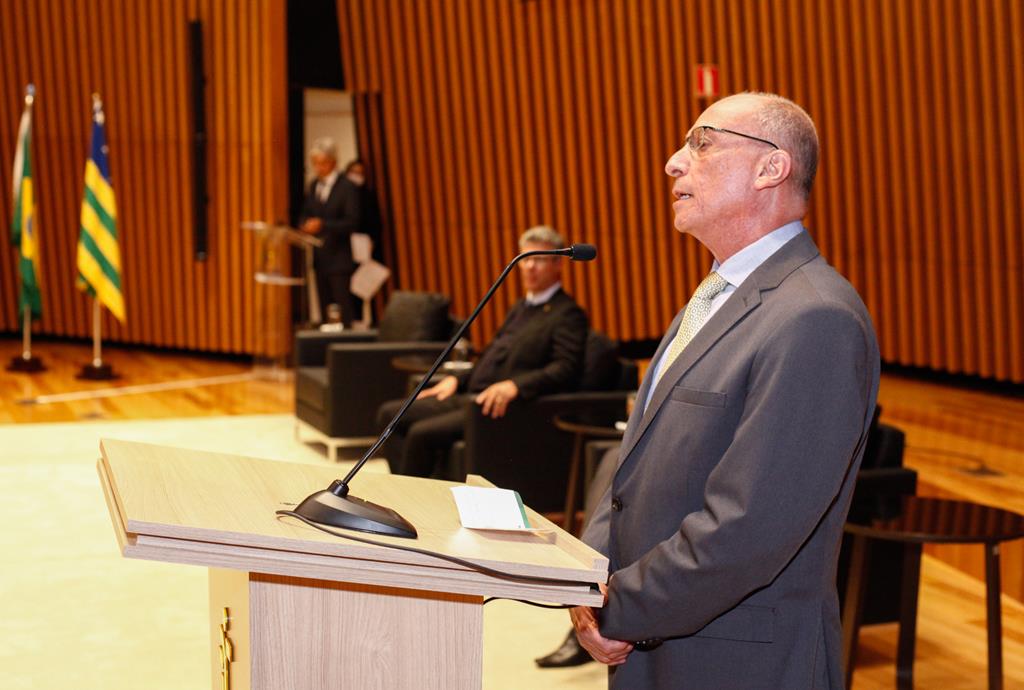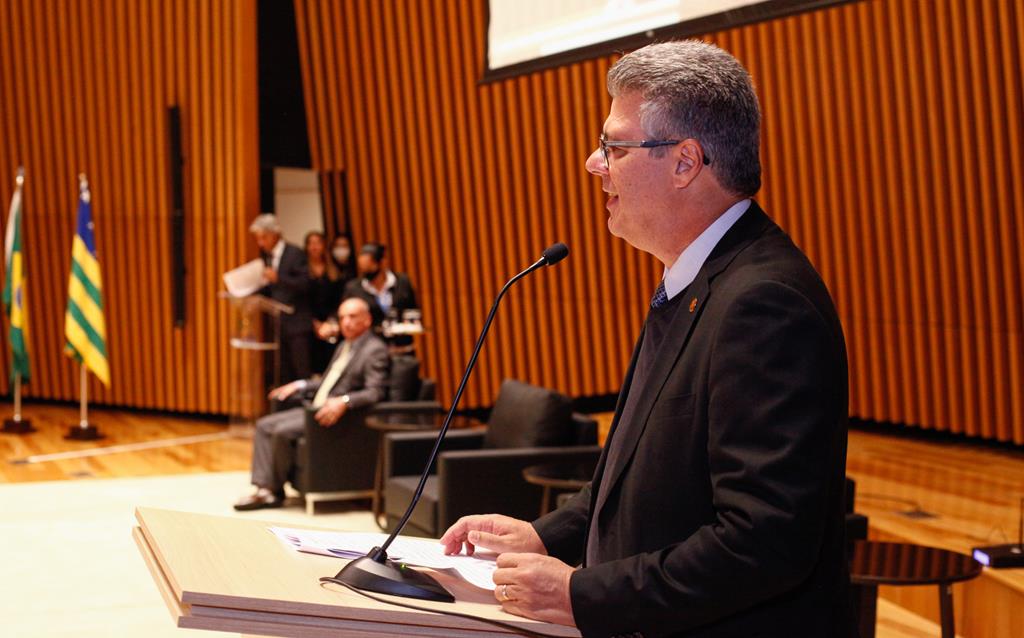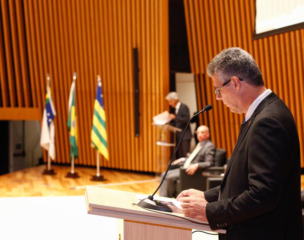 Desembargador Luiz Cláudio Braga, membro da Comissão Permanente de Memória e Cultura do Poder Judiciário do Estado de Goiás, discursou representando o presidente do TJGO, desembargador Carlos França
