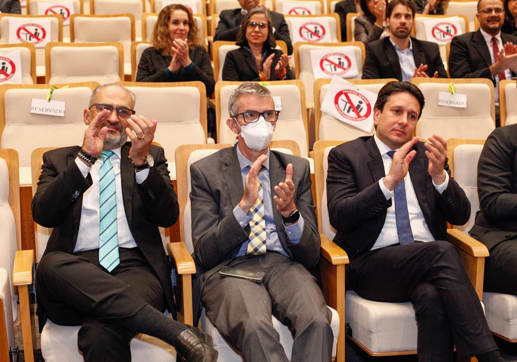 Participaram também da cerimônia: o desembargador do trabalho, Paulo Pimenta; o diretor-geral do TRT-18 Álvaro Celso Bonfim; o vice-procurador do Ministério Público do Trabalho em Goiás, Marcelo Ribeiro Silva; o presidente da Associação dos Magistrados do Trabalho da 18ª Região (Amatra 18), juiz Fernando Rossetto; o vice-diretor da Escola Judiciária Eleitoral de Goiás, juiz Adenir Teixeira Peres Junior; o presidente da Associação Goiana dos Advogados Trabalhistas (Agatra 18), Jerônimo José Batista Júnior; o diretor-geral do TRE-GO, Wilson Gamboge, e Fernando Antônio Torquetto, representante do Centro Universitário Alfredo Nasser (Unifan).