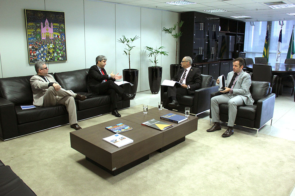 Os procuradores federais Tomaz de la Cruz e Vinícius Silveira reuniram-se na manhã desta sexta-feira, 15/2, com o presidente do TRT-GO, desembargador Paulo Pimenta, para apresentar projeto-piloto da Procuradoria-Regional Federal da 1ª Região, da Advocacia-Geral da União (AGU), com o objetivo de solucionar processos na fase de execução em casos de responsabilidade subsidiária de fundações públicas e autarquias.
