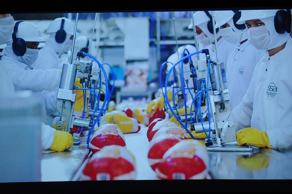 A equipe do Tribunal foi recebida pelo CEO da empresa, José Carlos Garrote, acompanhado de alguns de seus diretores. Garrote explicou que a indústria realiza o abate diário de 360 mil aves, emprega cerca de 4.800 funcionários diretos, 2 mil funcionários terceirizados e exporta alimentos para 65 países. O empresário mostrou as estações de tratamento de água, esgoto e de resíduos da empresa. “Tudo é reaproveitado, seja para produção de ração, seja para adubo nas lavouras”, ressaltou o CEO, explicando que o adubo utilizado nas lavouras é quase todo orgânico, sendo que a meta é atingir os 100%.