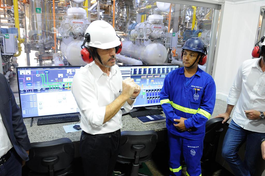 O engenheiro da empresa Lucas Carvalho conduziu a equipe do Tribunal até a Casa de Máquinas, geradora de resfriamento para as câmaras de congelamento. Após, a comitiva seguiu até a sala de geradores, passou pelas salas de observação de desossa de aves e, por fim, visitou o SESMT, Serviço Especializado em Engenharia e em Medicina do Trabalho da indústria.