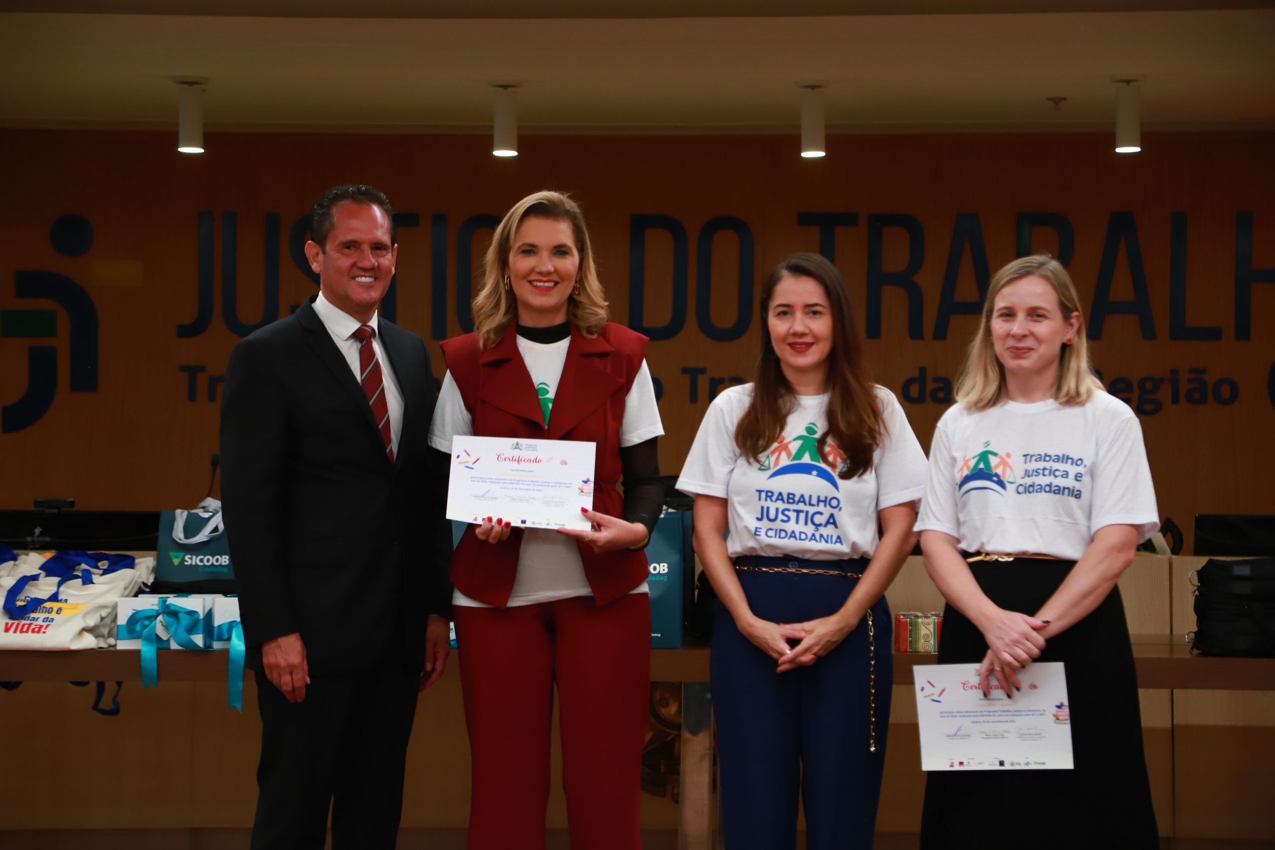 A Juíza auxiliar da Presidência do TRT-GO e coordenadora regional do TJC em Goiás,  Narayana Hannas, também recebu o certificado de reconhecimento como voluntária pela contribuíção para as ações em 2025