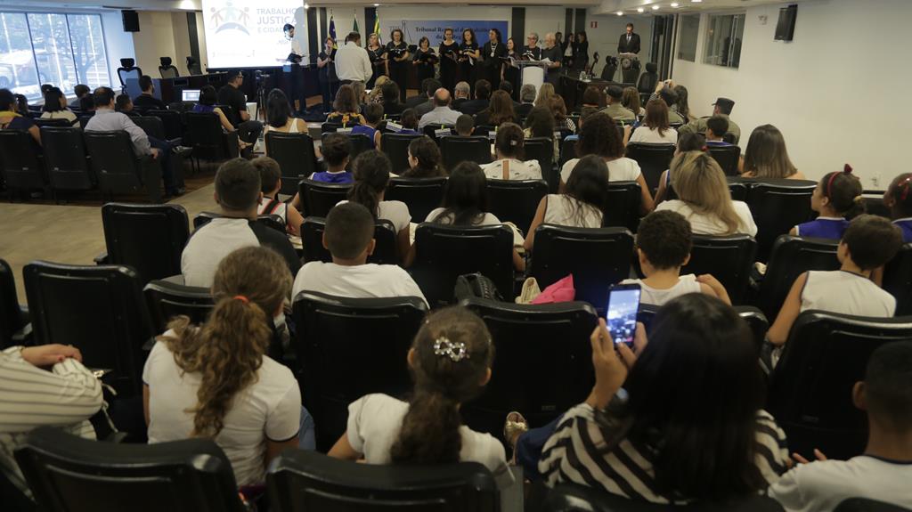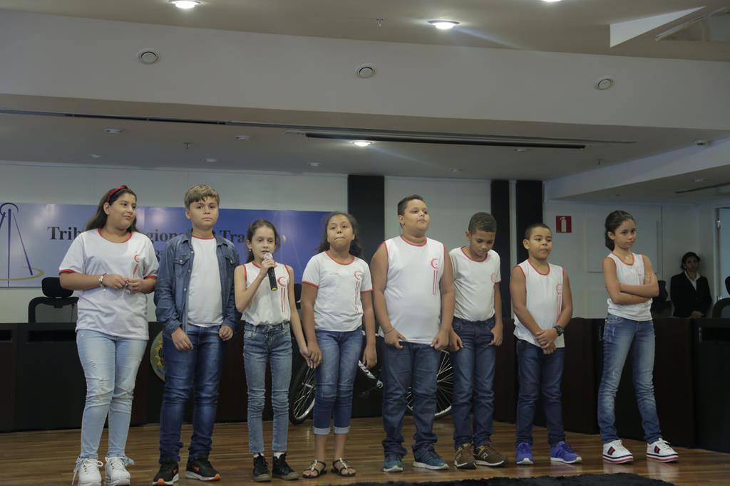 Cerca de 60 alunos do 5º ano de quatro escolas públicas da cidade de Goiás participaram na manhã desta quinta-feira (14/11) da solenidade de premiação do concurso de redação promovido pela Associação dos Magistrados do Trabalho da 18ª Região (Amatra18). O concurso teve como tema, “o futuro do trabalho digno”. A iniciativa faz parte do programa Trabalho, Justiça e Cidadania (TJC), iniciado em agosto deste ano com a prévia capacitação de diretores e professores para ensino lúdico de direito e cidadania, com destaque para utilização em sala de aula da Cartilha do Trabalhador.