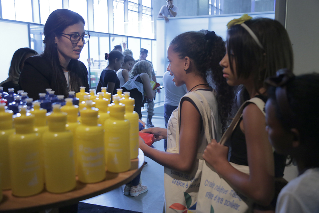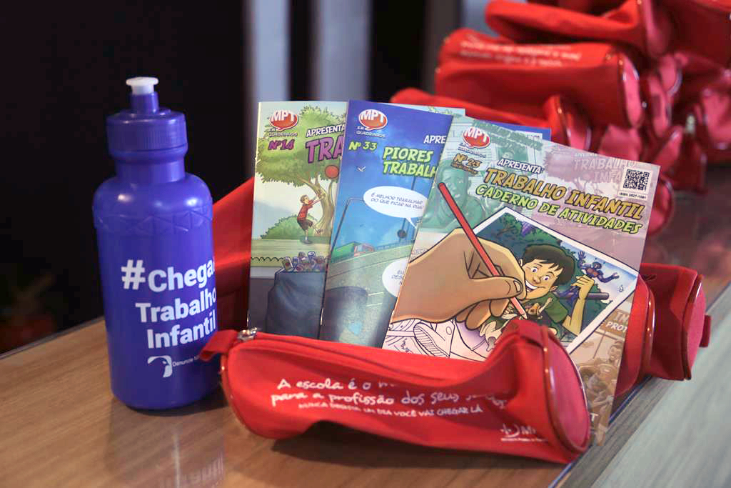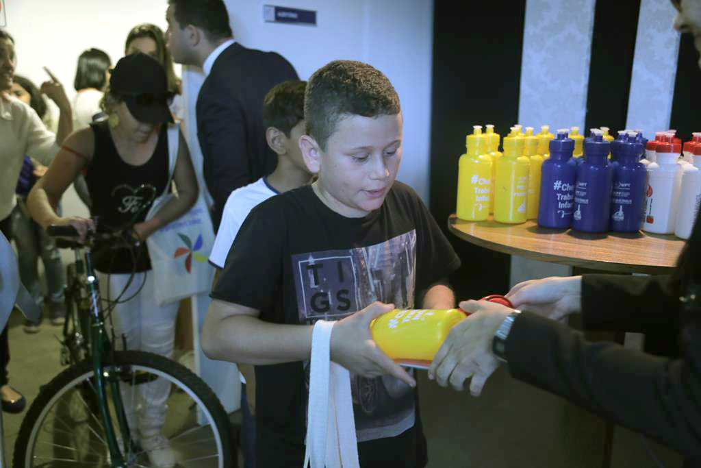 Estudantes recebem brindes doados pelo MPT-GO, pelo Programa de Combate ao Trabalho Infantil e pela empresa São Salvador Alimentos