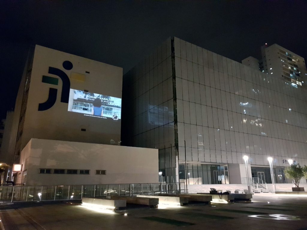 Nesse 8 de março, Dia Internacional da Mulher, a fachada do prédio Ialba-Luza Guimarães de Mello anoiteceu iluminada com a projeção do vídeo produzido pelo Tribunal para homenagear as mulheres que atuam na Justiça do Trabalho. A iniciativa da projeção partiu do presidente do Tribunal, desembargador Daniel Viana, com o fim de chamar a atenção das pessoas que transitam nas redondezas do edifício, na avenida T-1, no Setor Bueno, e não gerou custo extra ao Tribunal, uma vez que utilizou projetor pertencente à instituição.