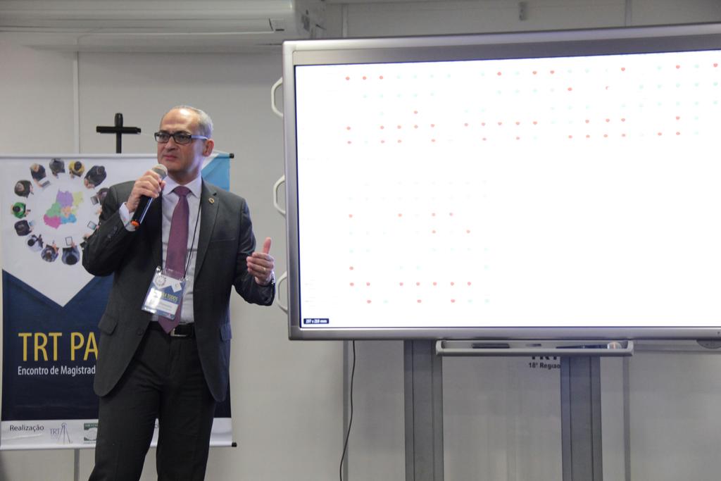 A programação do segundo dia do TRT para Todos foi aberta pelo vice-presidente e corregedor, desembargador Paulo Pimenta, que falou sobre o desempenho do Tribunal em relação ao cumprimento das metas nacionais estabelecidas pelo Conselho Nacional de Justiça. Além das varas do trabalho que participam da quarta edição, as equipes dos gabinetes da Vice-Presidência e do desembargador Mário Bottazzo assistiram à apresentação. O corregedor fez uma análise do desempenho do primeiro e segundo graus e, ao demonstrar o painel de acompanhamento comparativo entre os regionais trabalhistas, afirmou que a 18ª Região está muito bem em termos nacionais.