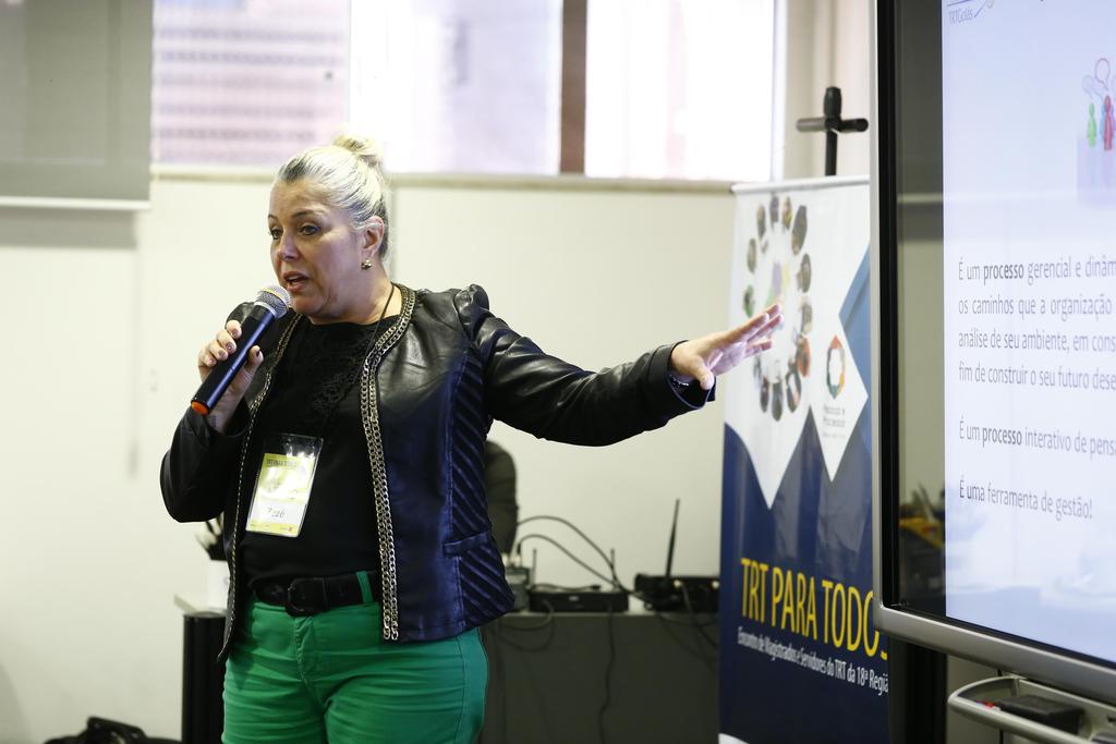 Posteriormente, a diretora da Secretaria de Gestão Estratégica, Maria José de Lourdes, apresentou o Planejamento Estratégico do TRT18, elaborado para o período 2015/2020. A servidora Flávia Queiroz deu continuidade à atividade com uma tarefa prática de construção do plano de ação das unidades reunidas.