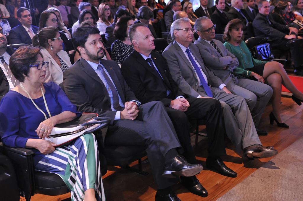 O desembargador-presidente do TRT18, Platon Teixeira Filho, abriu a solenidade parabenizando todos os magistrados e servidores, agraciados com selos ou não, pelo desempenho no cumprimento das metas em 2017. Ele reconheceu que esse resultado se deve ao trabalho conjunto desenvolvido pelo ex-presidente do Tribunal e agora ministro do TST, Breno Medeiros, e ao vice-presidente, Paulo Pimenta.